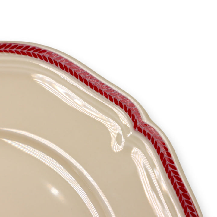 Ivory cream color with red / maroon leaf laurel band