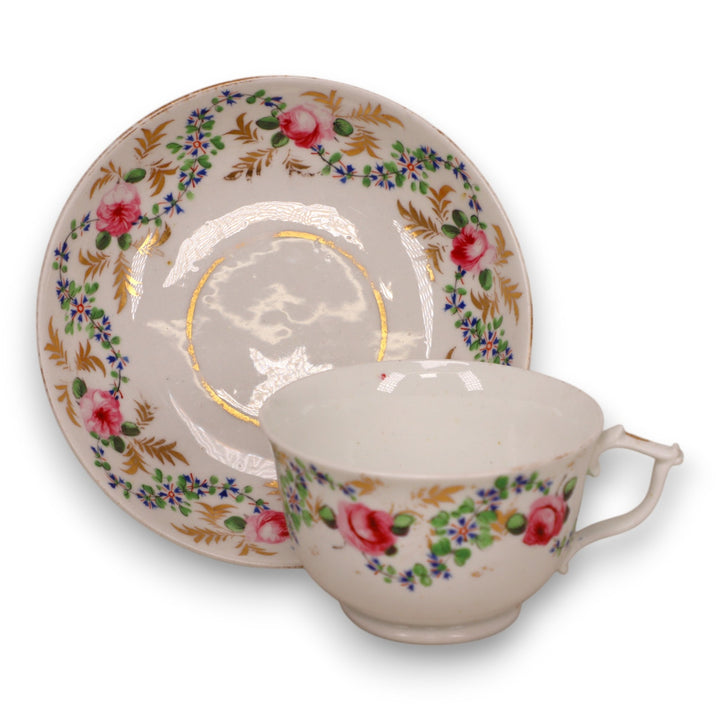 Royal Crown Derby Rose Gold Tea Cup Saucer Set England Antique 1806 to 1820 mark