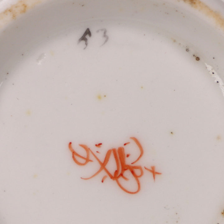 The well known mark of crown, crossed swords, dots and ‘D’ was adopted during the management of William Duesbury II from about 1784. The mark was continued in use by Robert Bloor until circa. 1820.