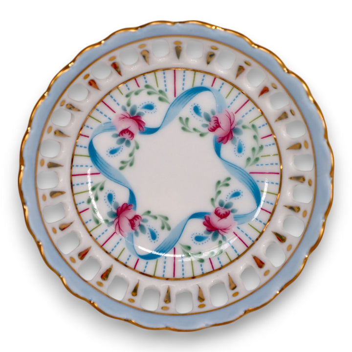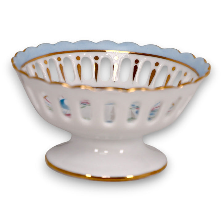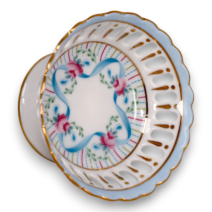 Royal Danube #1886 Compote Dish Reticulated Porcelain Blue Ribbon Floral