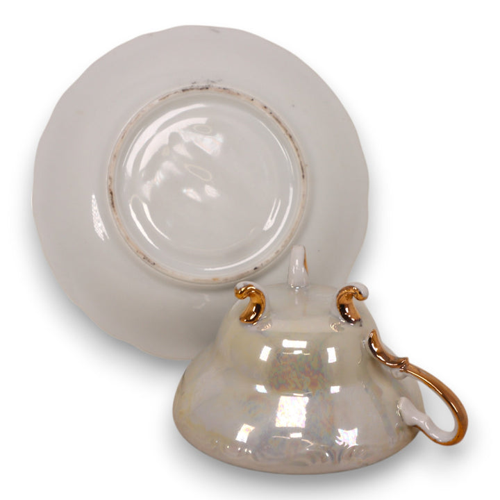 Description: Black with Pink Flower, Lusterware, Gold Rim