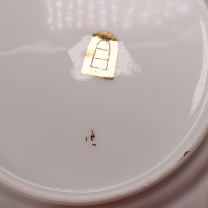 Mark is questionable. It appears to be over another blue mark, but can't make out the one on the underside. I believe they are by Arnart in Japan but can't say for certain. They are a wonderful set of plates nonetheless.