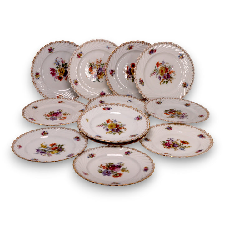 Royal Vienna 12pc Arnart Dessert Salad Plates 7 1/4" Scalloped Swirl Fluted Gold