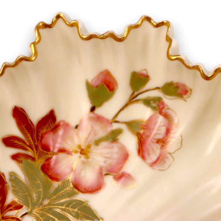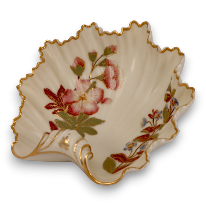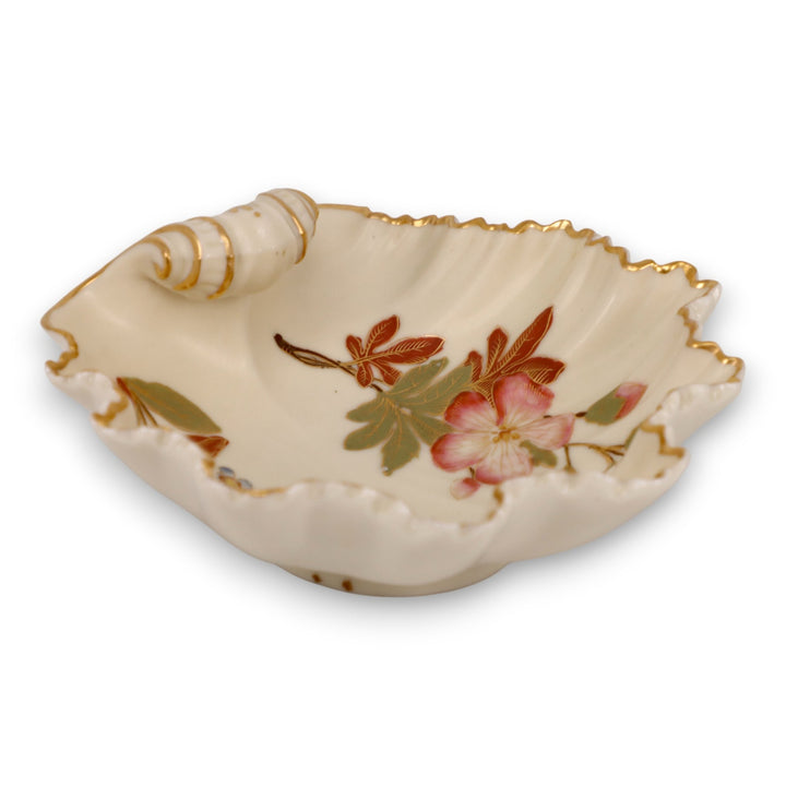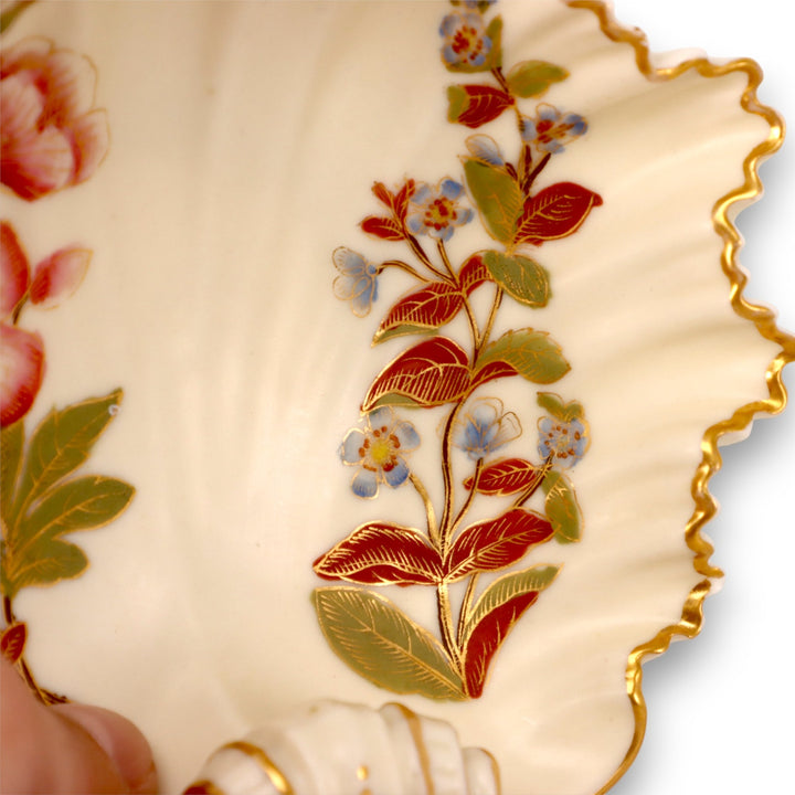 Royal Worcester Blush Ivory 1413 Art Spray Shell Form Candy Soap Dish Gold 1888