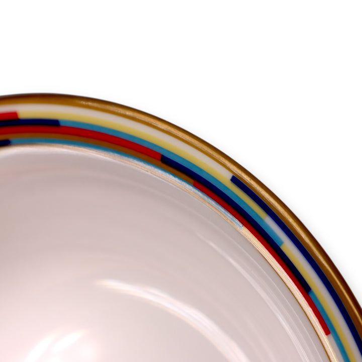 Multicolor rim with gold trim and minimalist white center