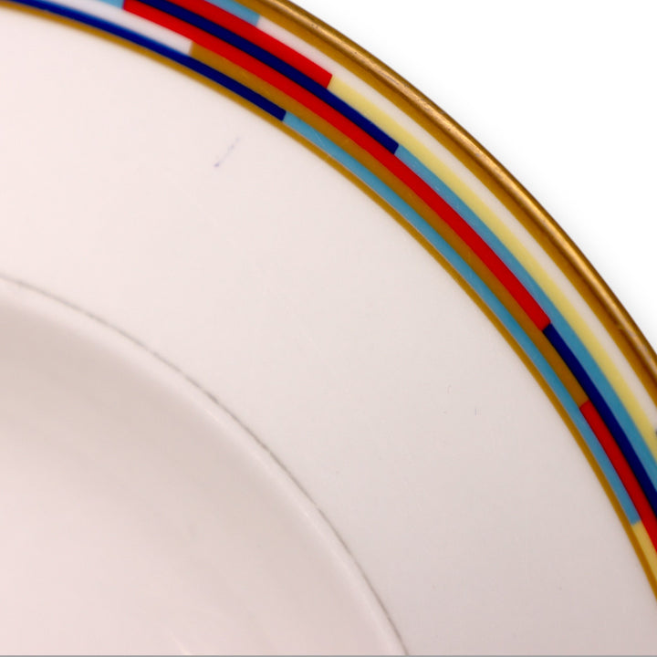 Multicolor rim with gold trim and minimalist white center