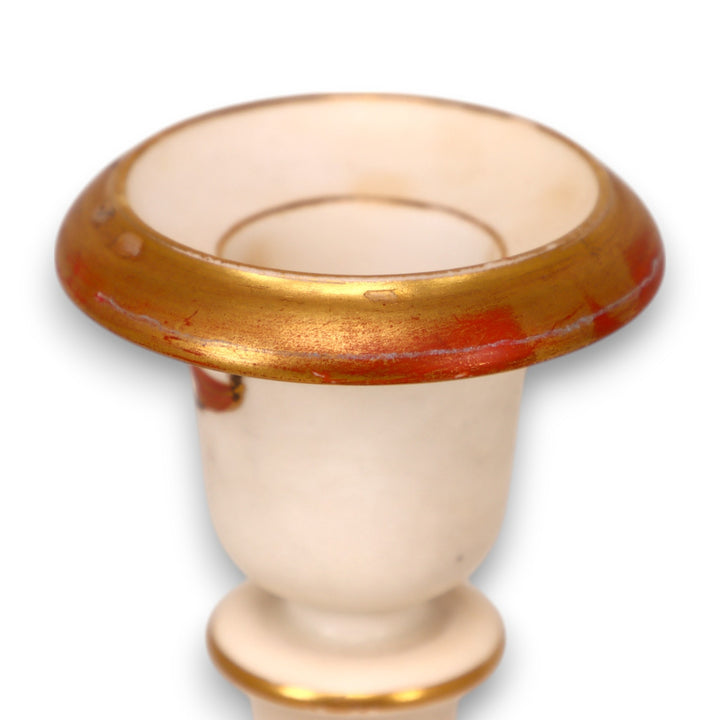 Very good + condition. Light gold wear on rim and some discoloration in candle cup. See pixcs for detail. Otherwise excellent.