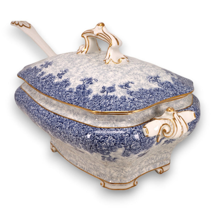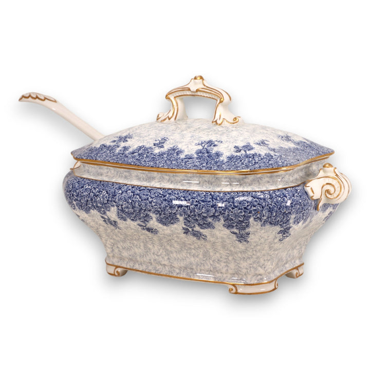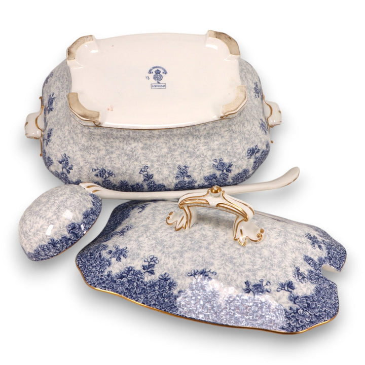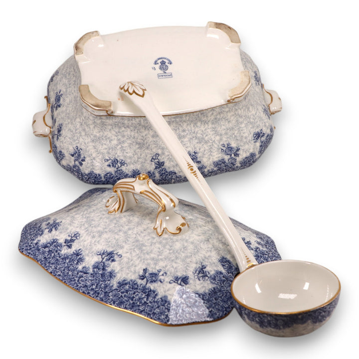 Royal Worcester W2297 68547 Soup Tureen Matching Ladle Blue Floral Gold Trim 1890