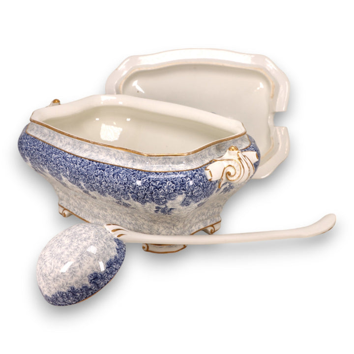 Royal Worcester W2297 68547 Soup Tureen Matching Ladle Blue Floral Gold Trim