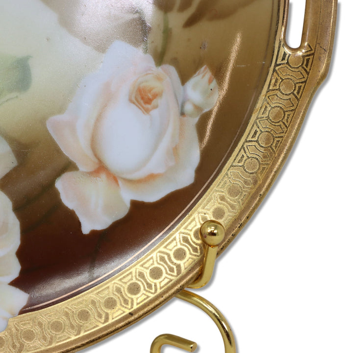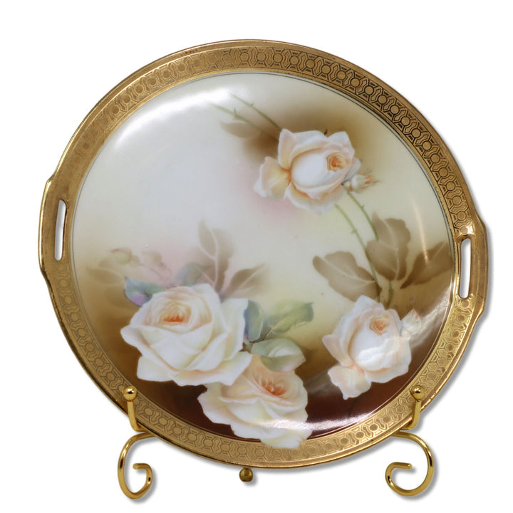 RS Germany Reinhold Schlegelmilch Rose Painted 9 1/2" Gold Encrusted Plate 1920