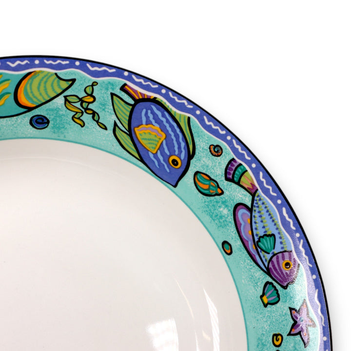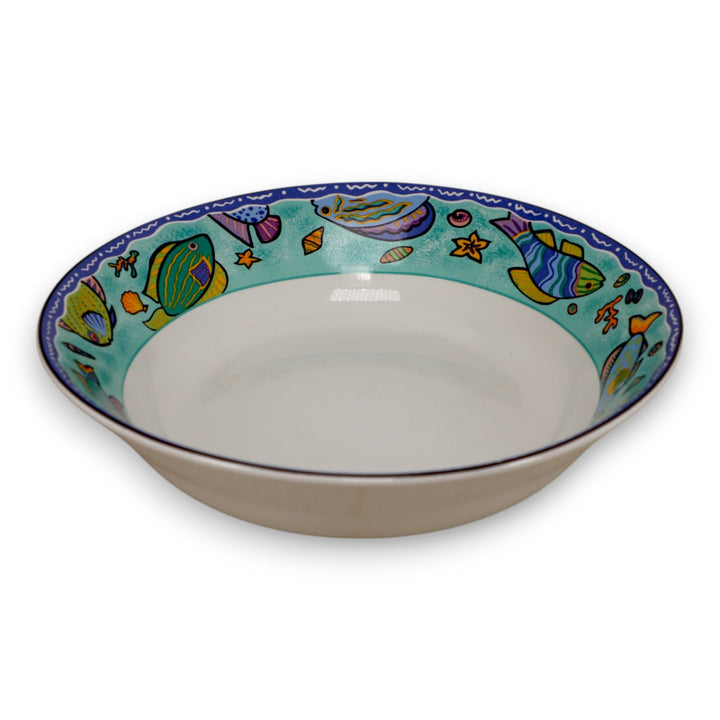 Sakura Caribbean Wave Coupe Soup Bowl 7 1/2" Fishes Blue Vintage 1990's