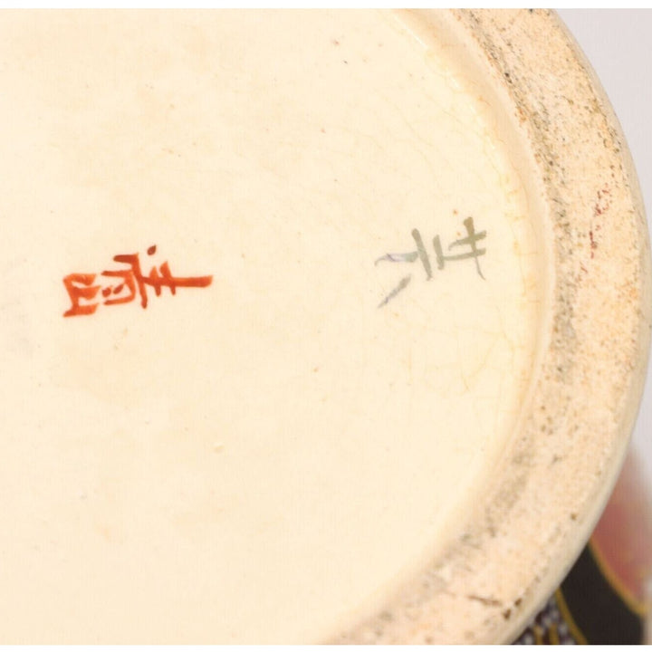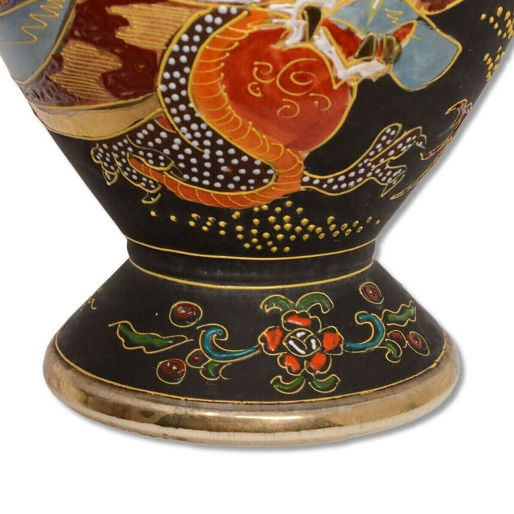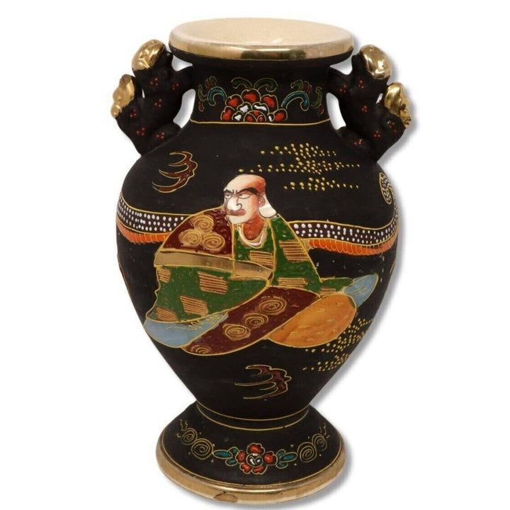 Satsuma Fu Foo Dog 10” Signed Vase Handled Footed Enamel Gold Moriage Ceramic