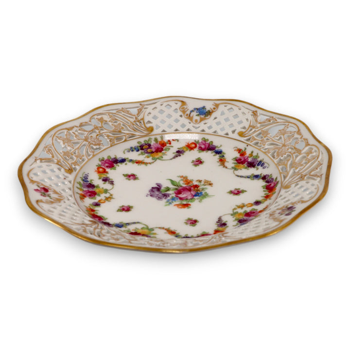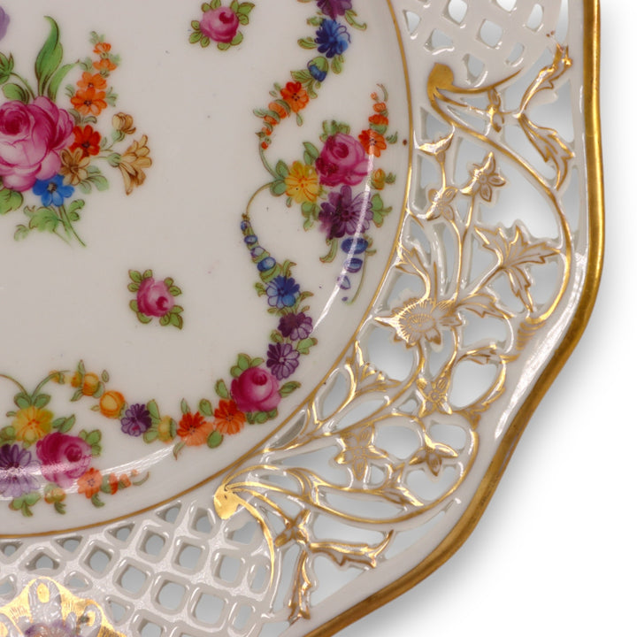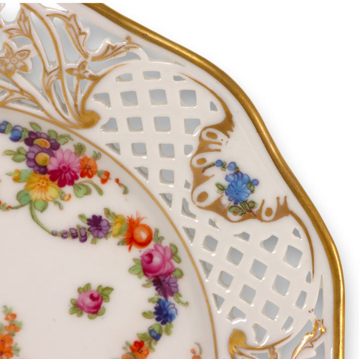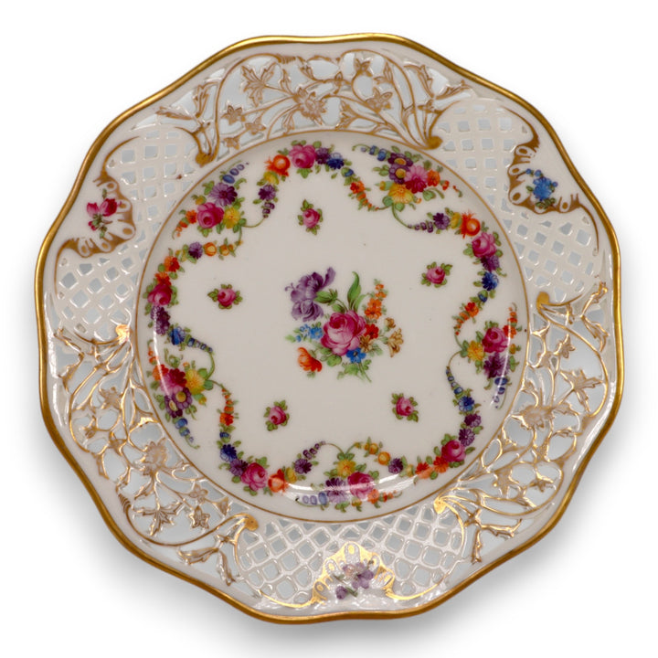 Schumann Reticulated Dessert Luncheon Plate 9 1/8" Reticulated Floral Swags Germany 1930's