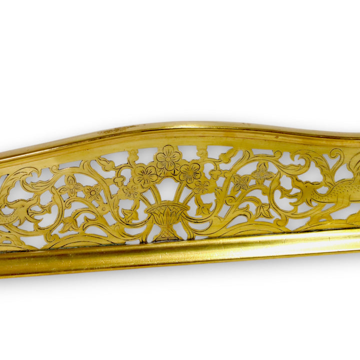 Serpentine Griffin 19th C Solid Brass Fireplace Fender 54 1/2" x 15" Antique