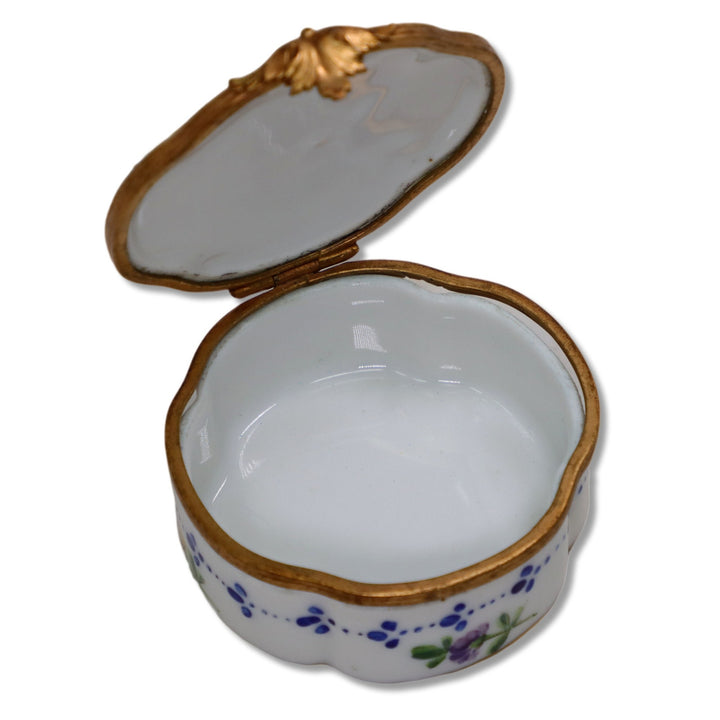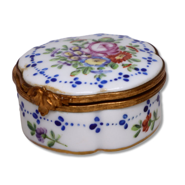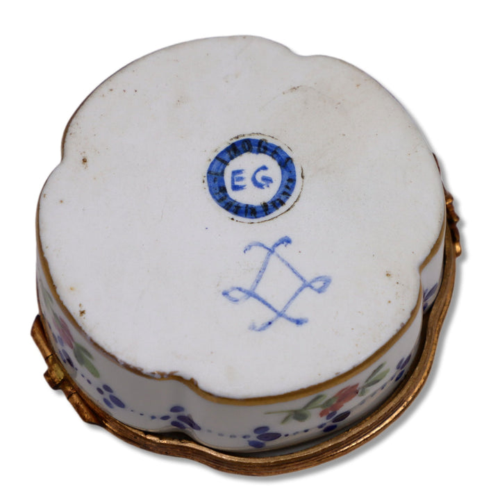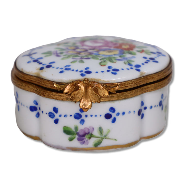 Sevres EG Limoges Porcelain Trinket Pill Box Hand Painted Floral 2 1/4" Antique