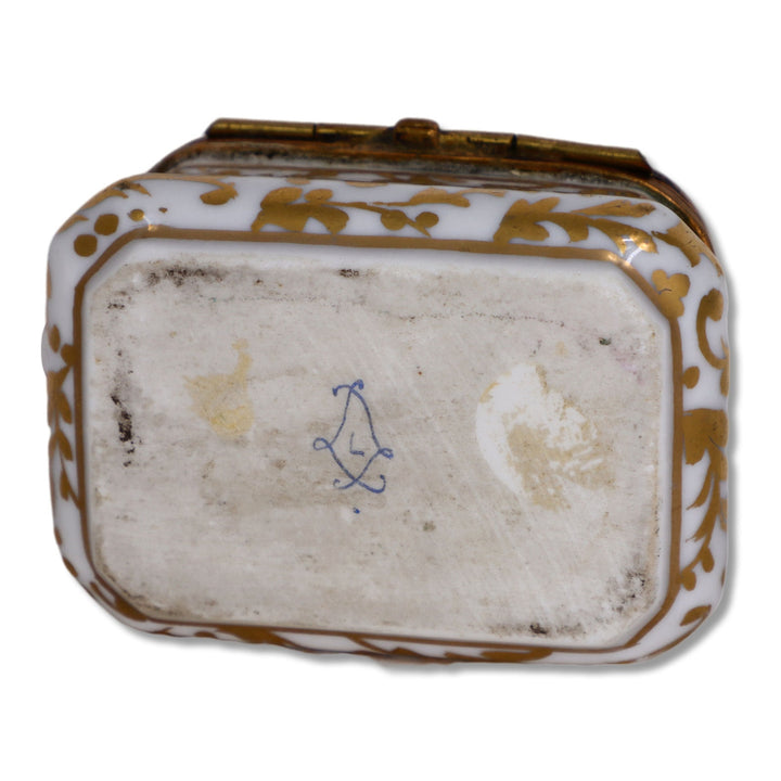Sevres Porcelain Trinket Pill Box Gold Laurels Floral Painted Antique 1764