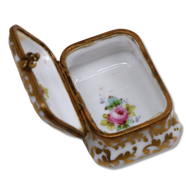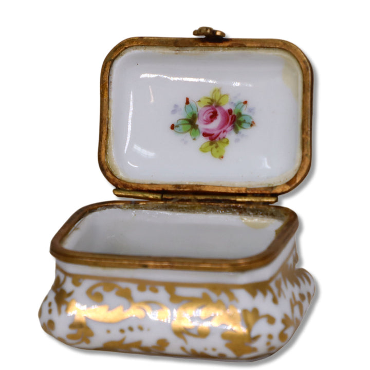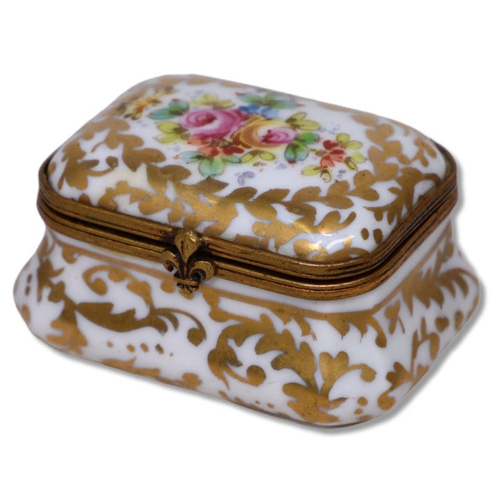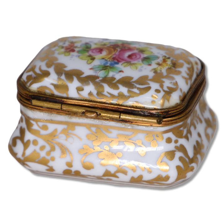 Sevres Rectangle Porcelain Trinket Pill Box Gold Laurels Floral Painted Antique