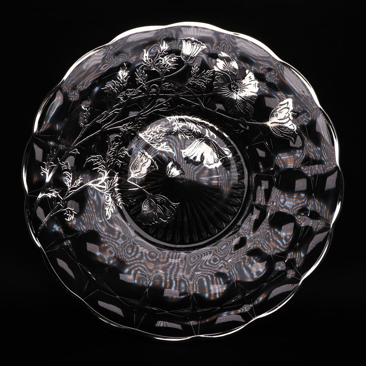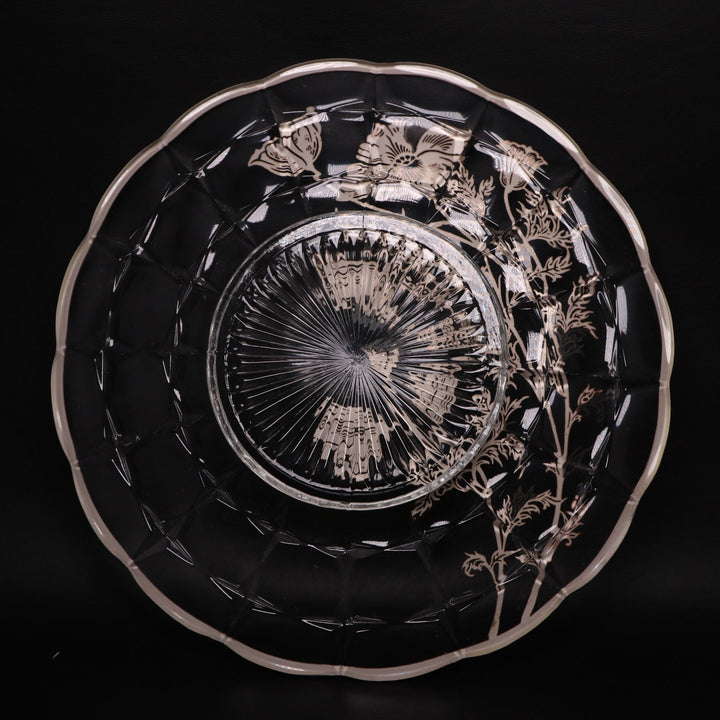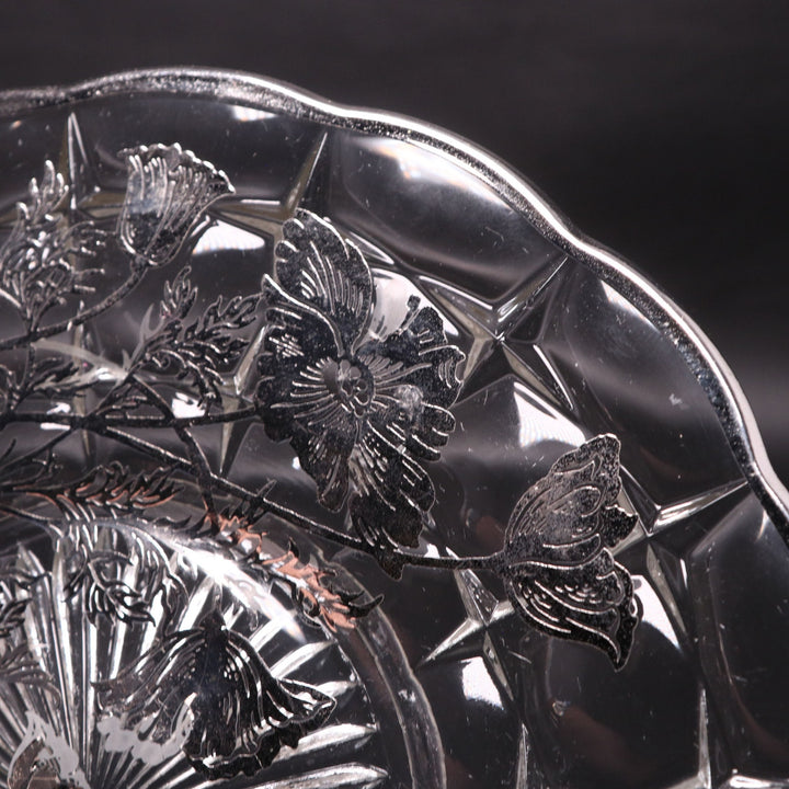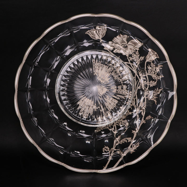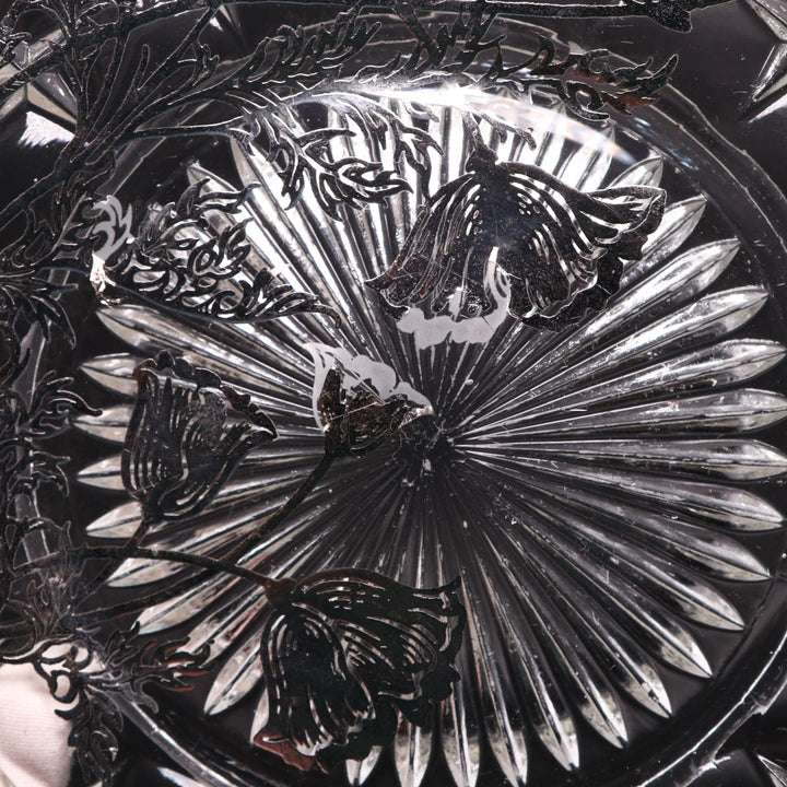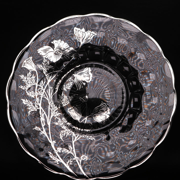 Silver City Flanders Poppy Sterling Silver Overlay 11” Optic Glass Sandwich Plate
