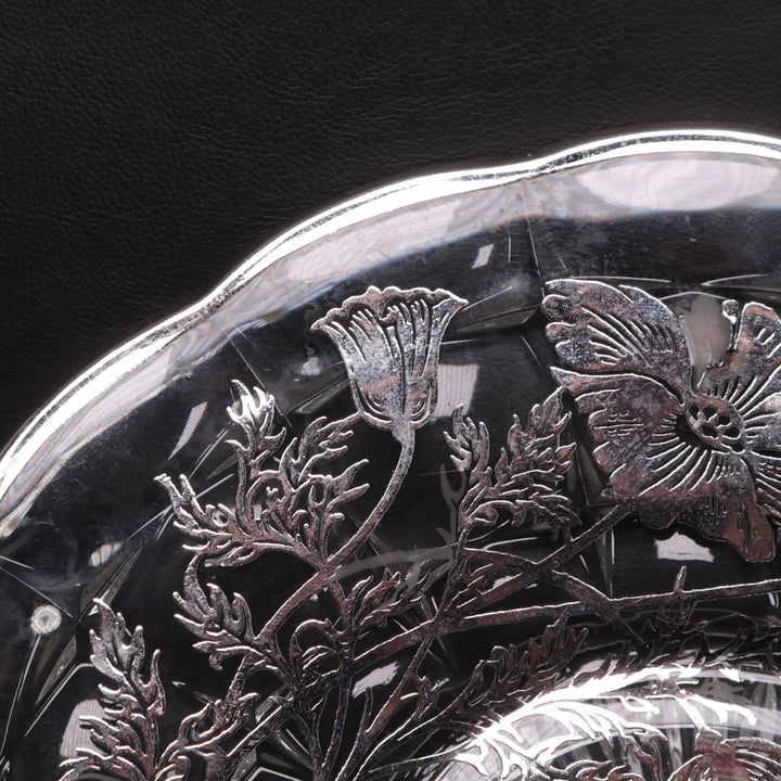 Silver City Flanders Poppy Sterling Silver Overlay 11”Optic Glass Sandwich Plate