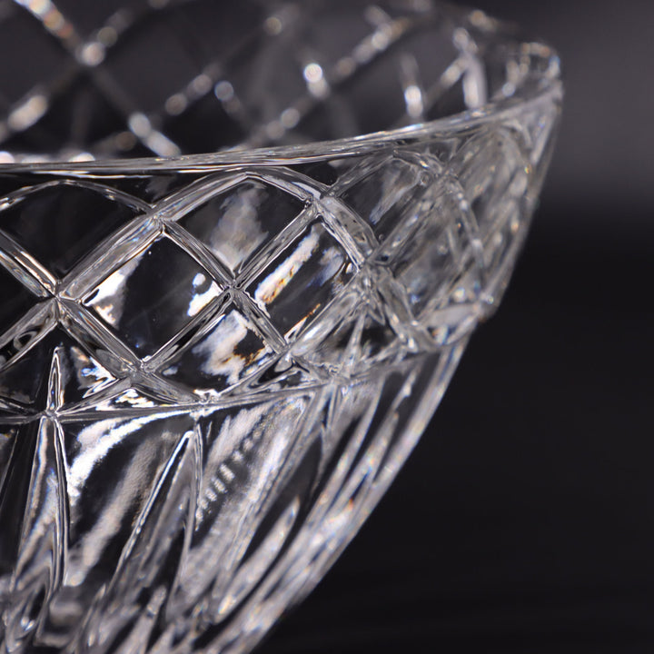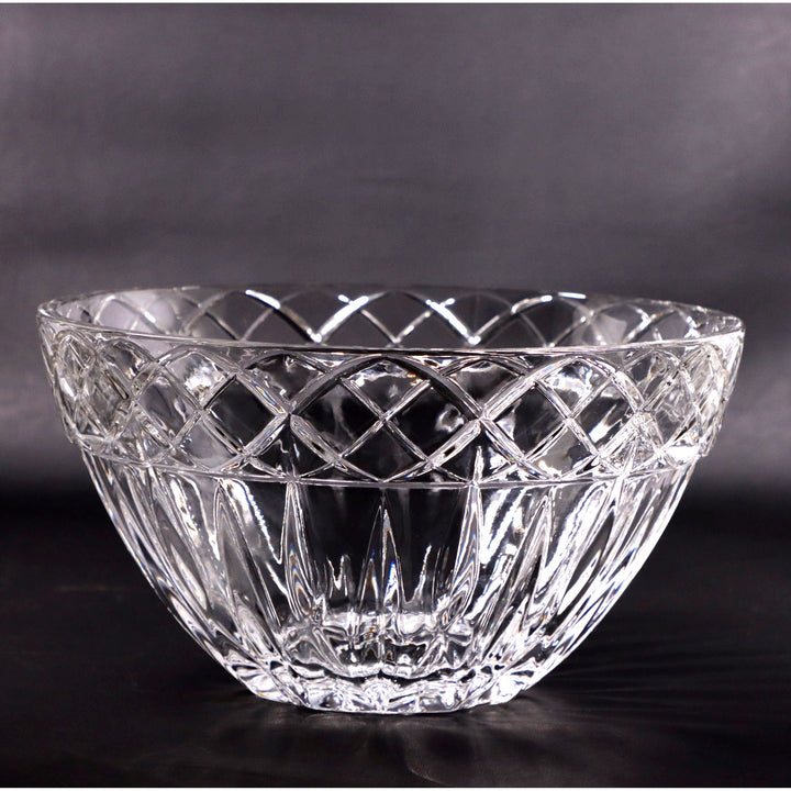 Sine Wave Banded 10" Crystal Bowl with Vertical Cuts Daisy Bottom