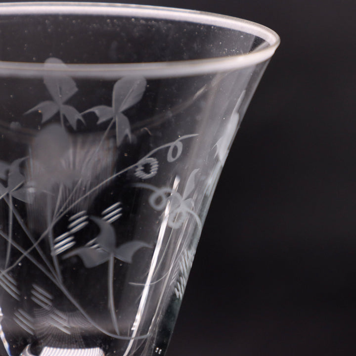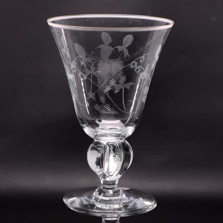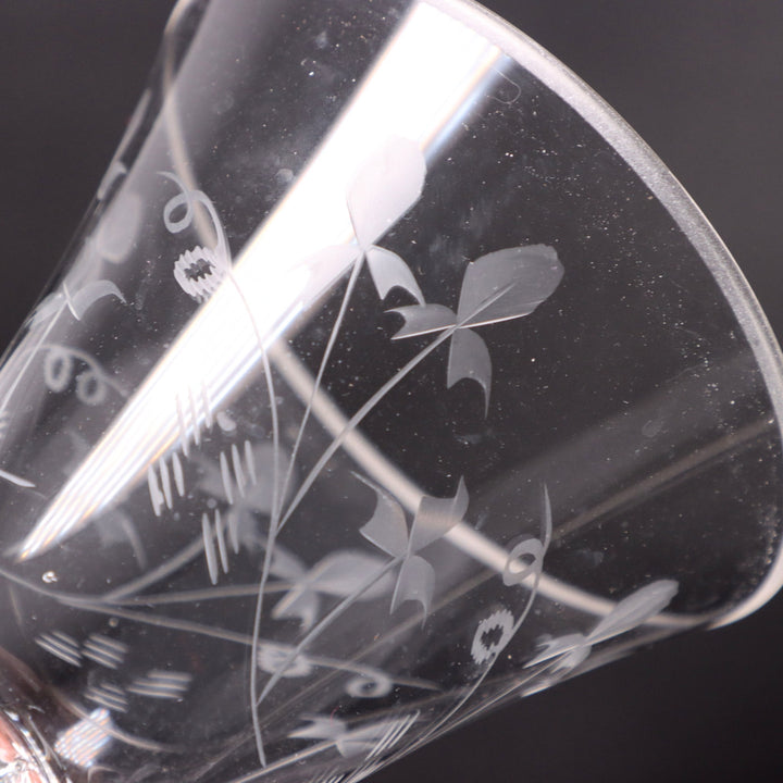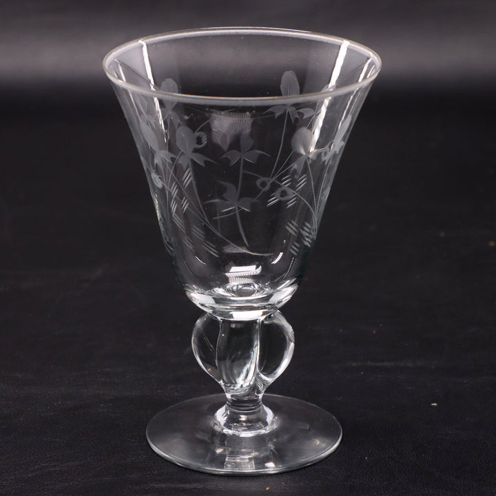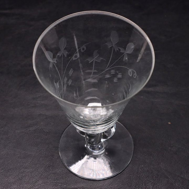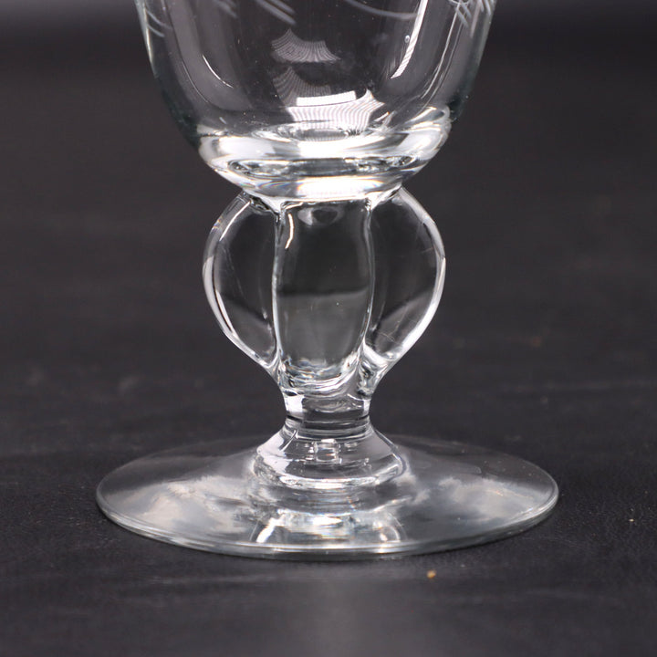 Skruf Sarnia Water Goblet 5 1/2" Etched Lobe Stem Sweden Vintage