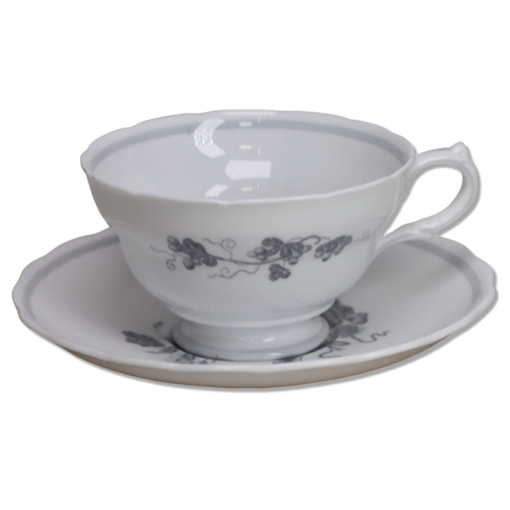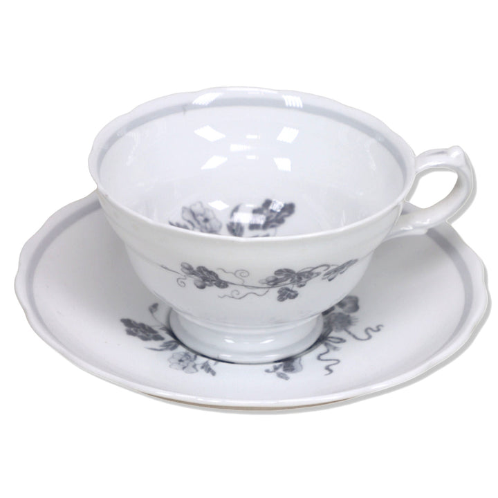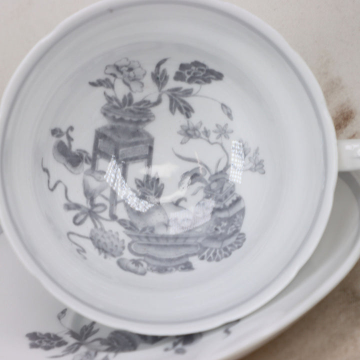 Spode Bowpot Grey Footed Tea Cup Scalloped Edge Saucer Set Bone China 1890's
