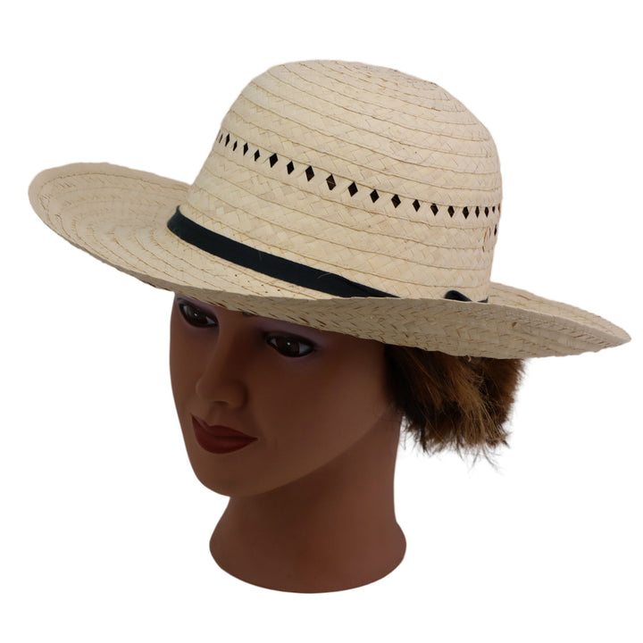 Straw Wide Upcurved 14" Brim Ladies Medium 56cm Sun Hat Vented Crown New