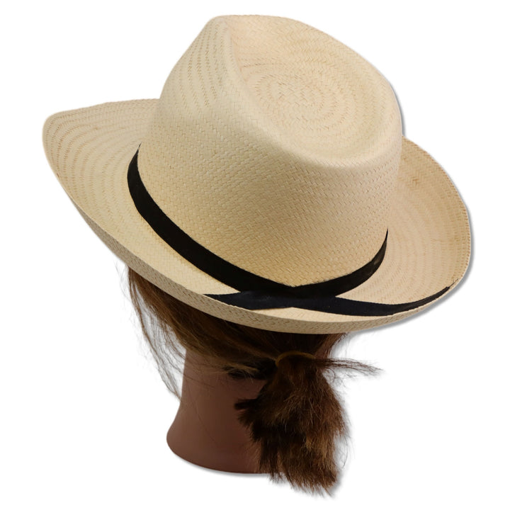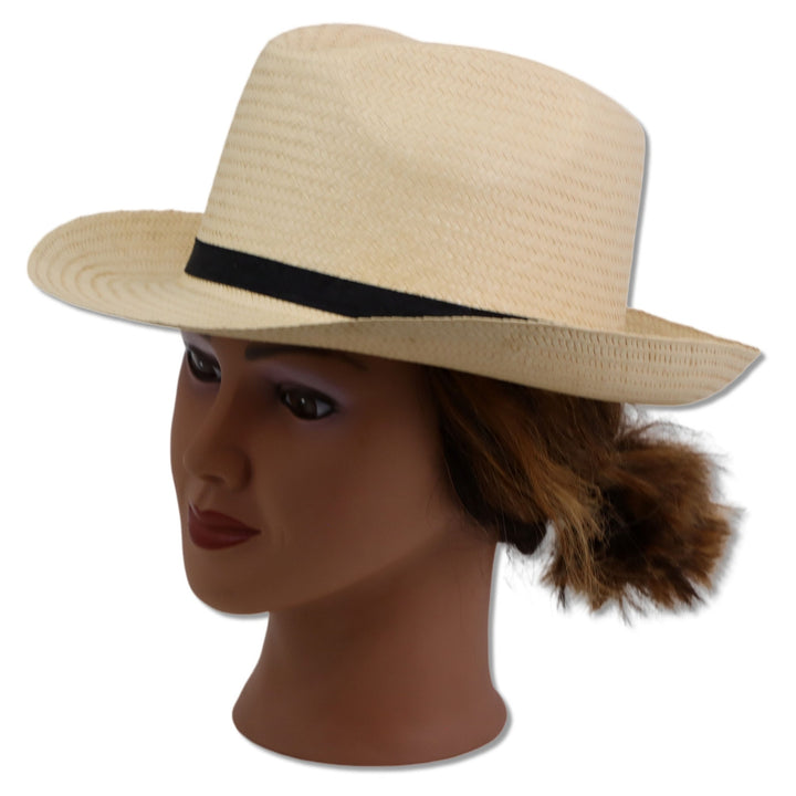 Summer Straw Fedora Panama Hat Black Band Ladies Medium 56cm US New