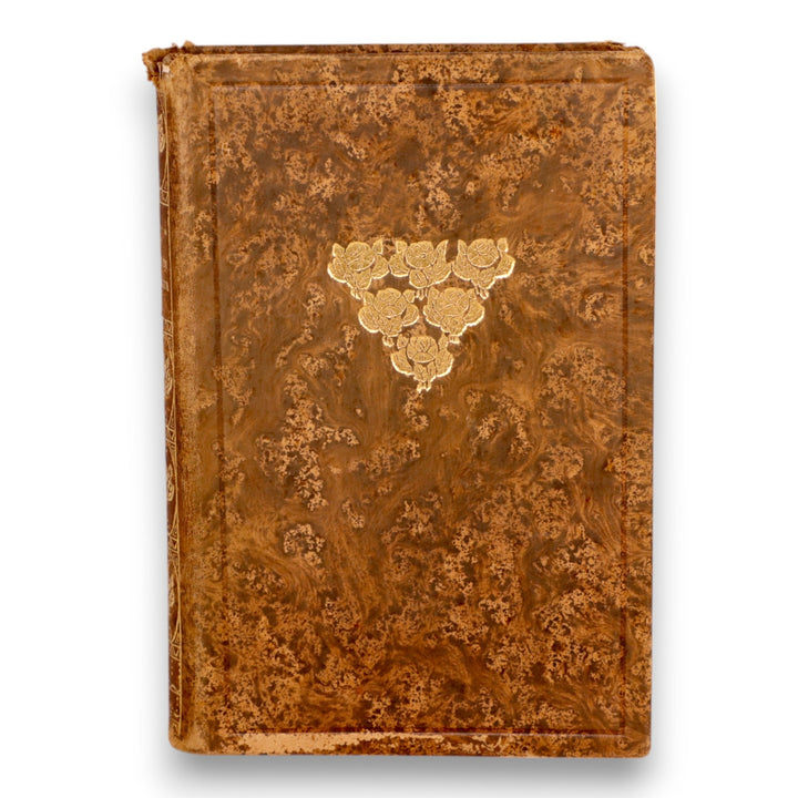 Binding: Faux burled wood cloth cover with elaborate gilt spine and floral gilt detail