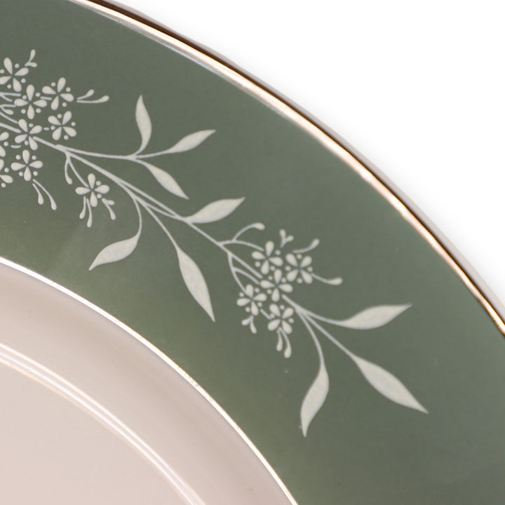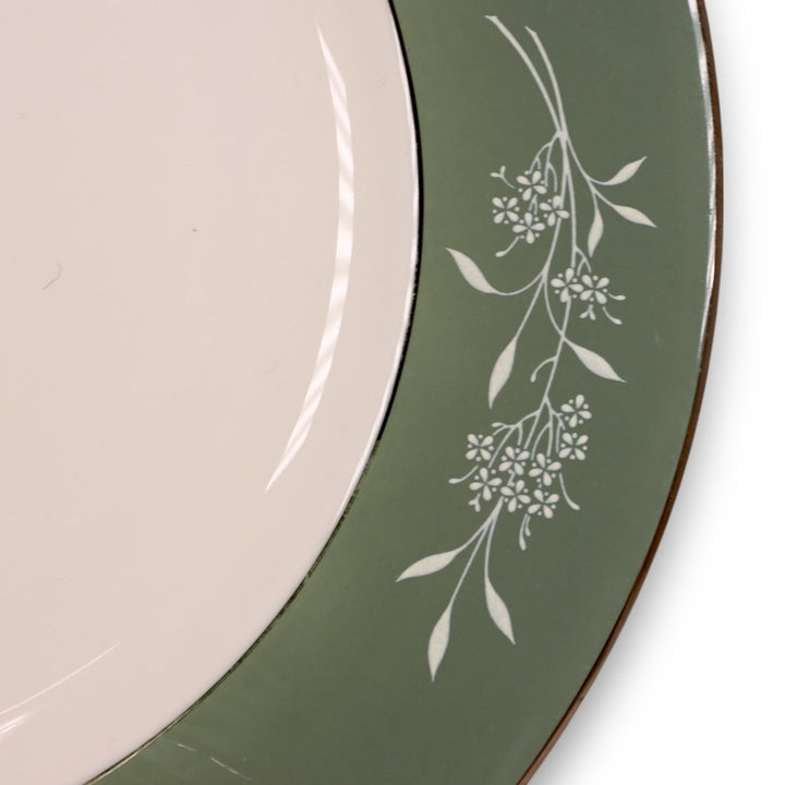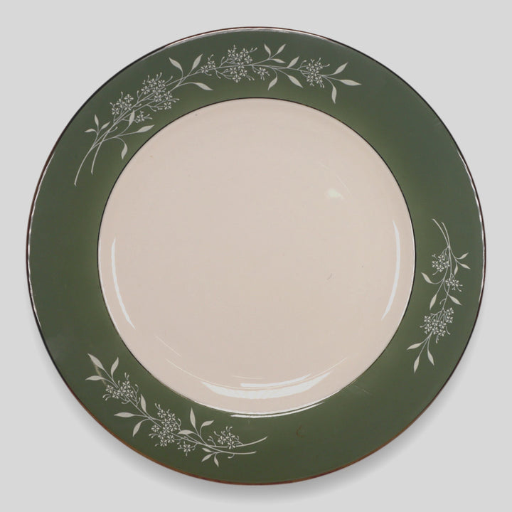 Syracuse Candlelight White Flowers on Green Rim 10 3/4" Dinner Plate USA