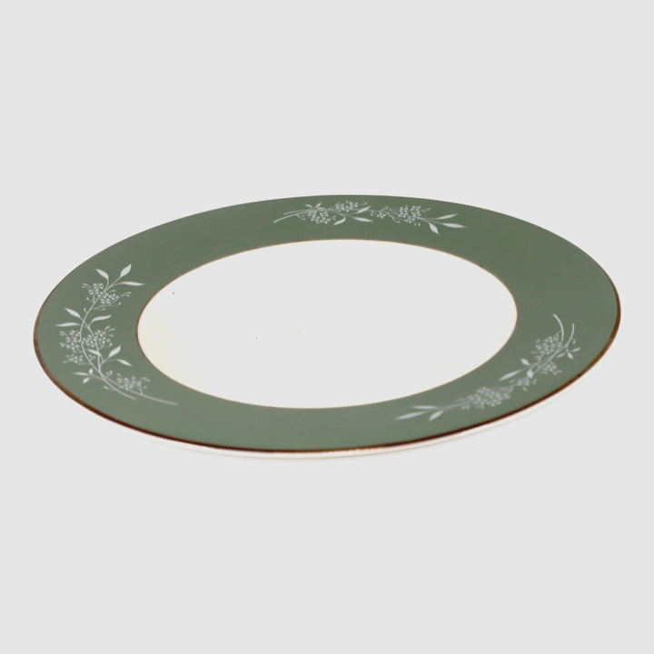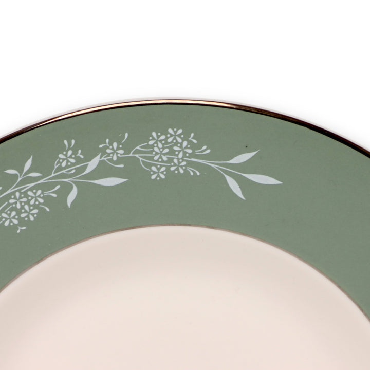 Syracuse Candlelight White Flowers on Green Rim 9" Rimmed Soup Bowl USA
