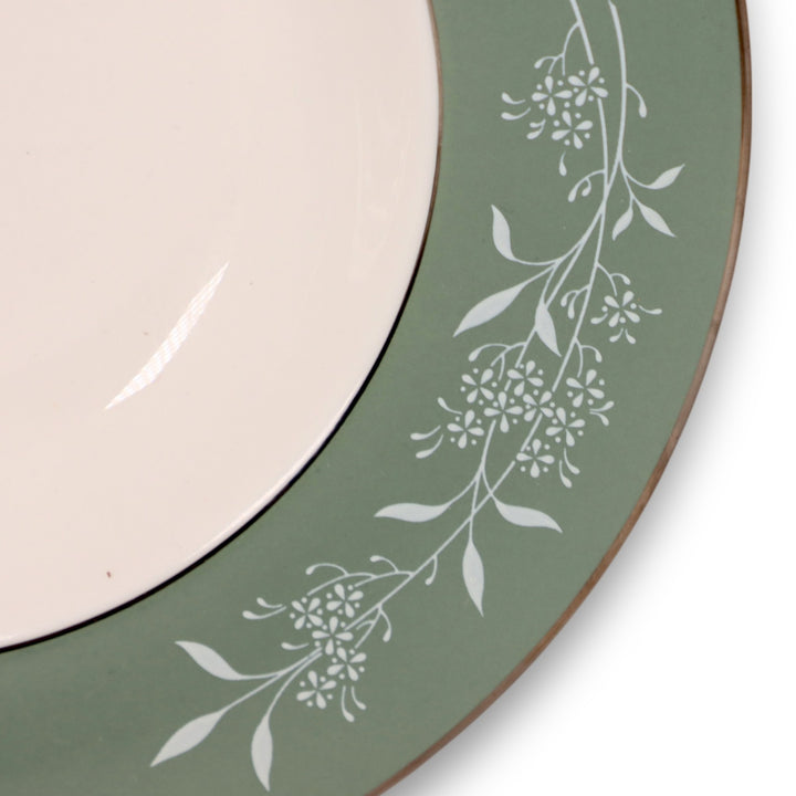 Syracuse Candlelight White Flowers on Green Rim 9" Rimmed Soup Bowl  USA