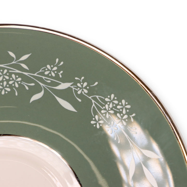 Syracuse Candlelight White Flowers on Green Rim Footed Tea Cup and Saucer Set