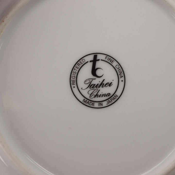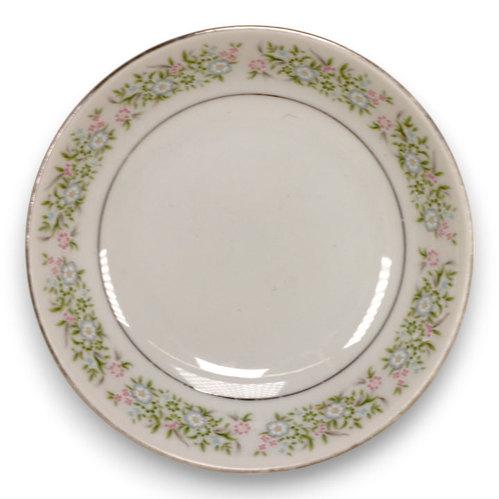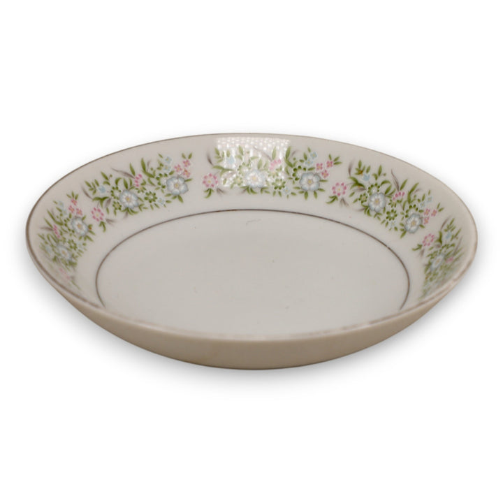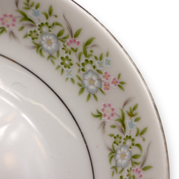 Taihei Springtime Fruit Bowl 5 1/2" Green Floral Platinum Trim Vintage 1980's
