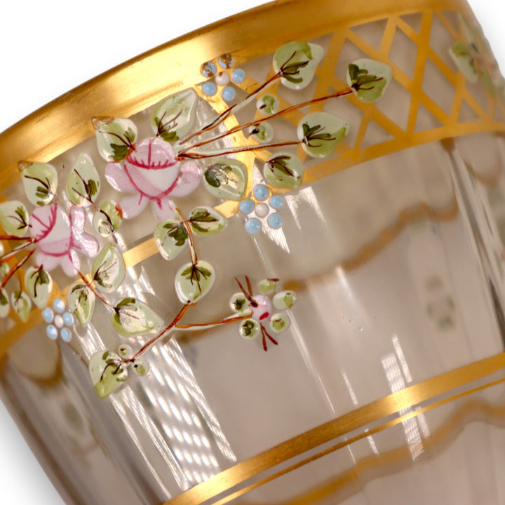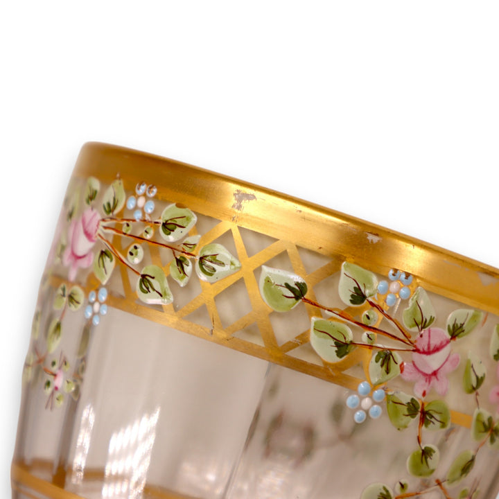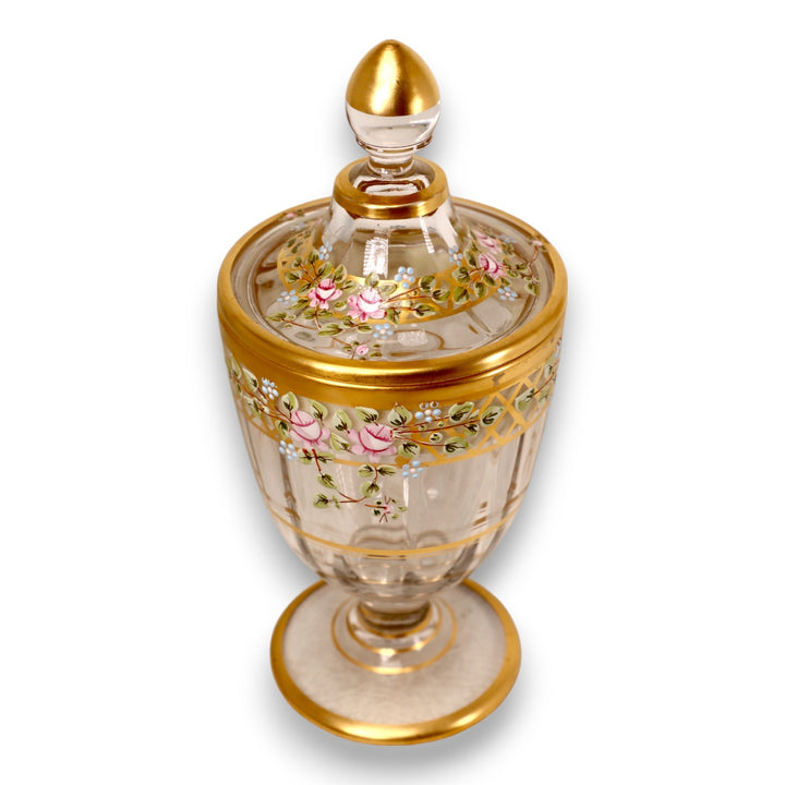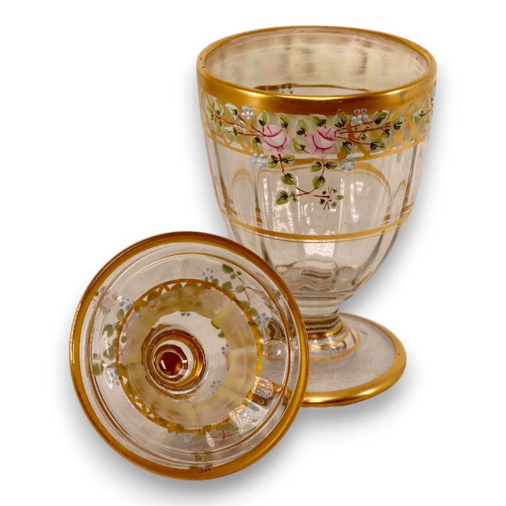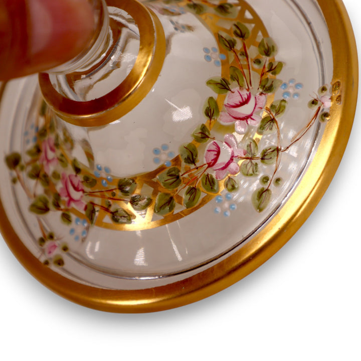 TG Hawkes Gold Encrusted Enamel Painted Floral Lidded Candy Dish Antique