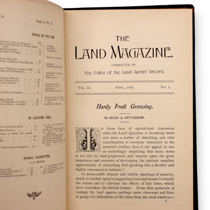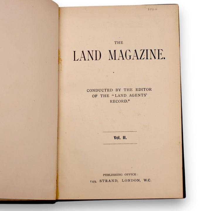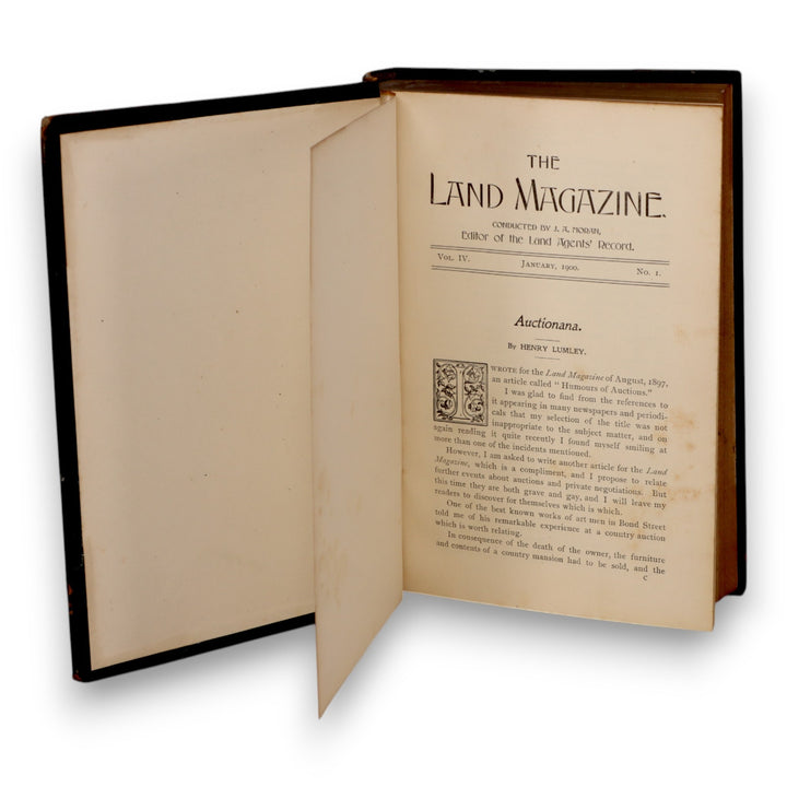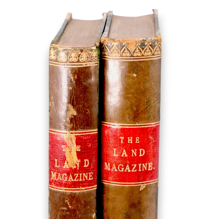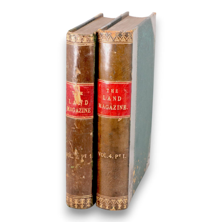 This is a rare pair of bound volumes of The Land Magazine, an agricultural and estate management periodical published in London in the late Victorian era. Volume II (1898) and Volume IV (1900) are bound in half-leather with gilt decoration and red spine labels. These early issues contain in-depth articles on land management, rural life, and agricultural practices at the turn of the century, making them valuable both as historical records and collectible reference works. Their age, rarity, and connection to the land agent profession make them highly desirable for collectors of antique agricultural, economic, or rural society literature.