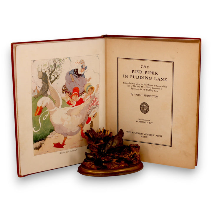 A charming vintage children’s book telling the imaginative tale of the Pied Piper with Christmas elements, believed to be Santa Claus’ oldest son. Delightfully illustrated throughout by Gertrude A. Kay in both color and silhouette.