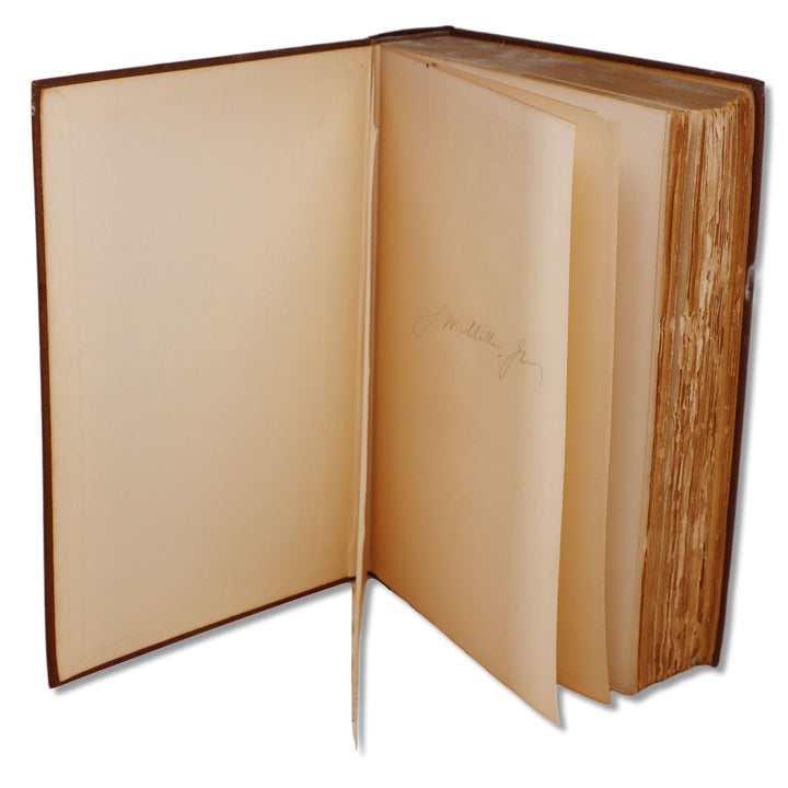Hardcover brown boards with gilted titling. Feathered outer page edges.