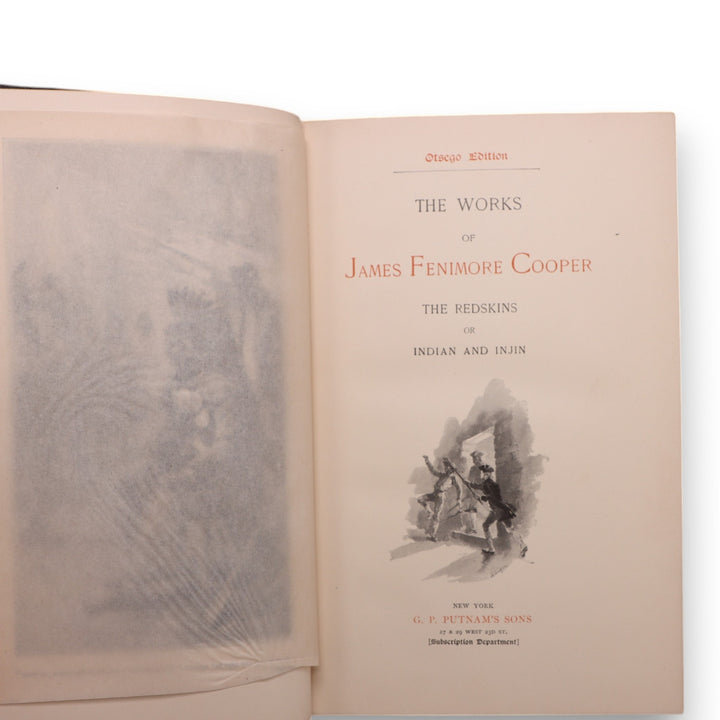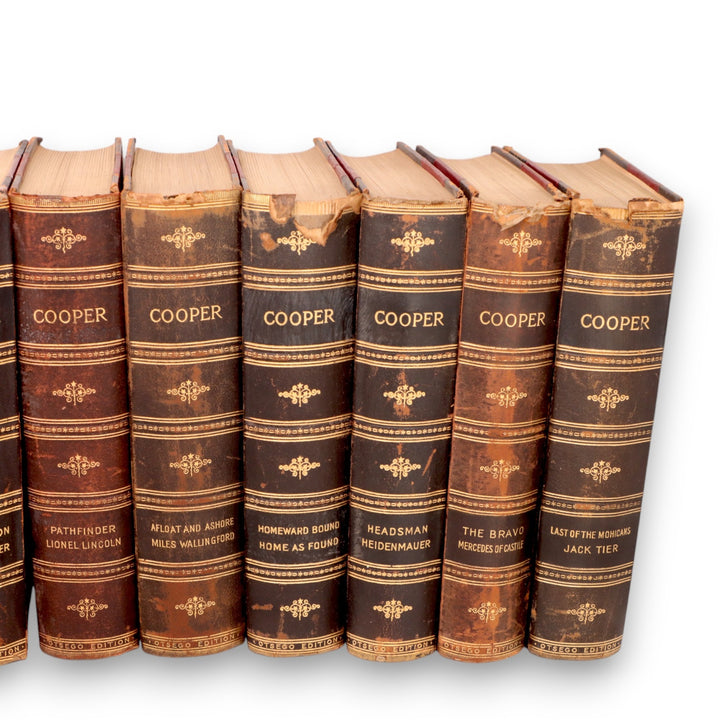 Title: The Works of James Fenimore Cooper. Includes: Pathfinder, Lionel Lincoln, R**skins, Wyandotte, Precaution, Chainbreaker, Satanstoe, Ways of the Hour, Red Rover, Wing and Wing, Deerslayer, wish-ton-wish, last of the Mohicans, Jack Tier, The Bravo, Mercedes of cstile, Pioneers, Sea-lions, Headsman, Heidenmauer, Homeward Bound, Home as Found, Afloat and Ashore, and Miles Wallingford.