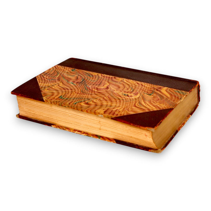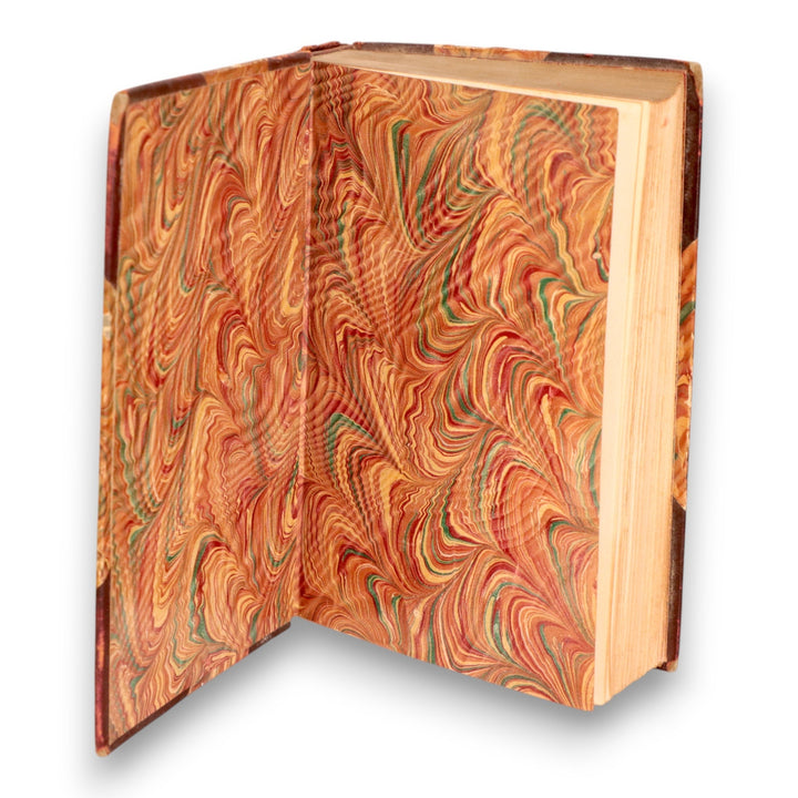 Binding: Calfskin leather bound spline and board covers with marbled boards.