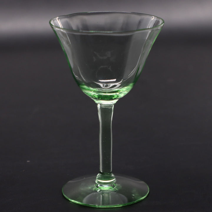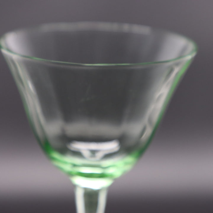 Tiffin Franciscan 14196 Optic Green Uranium Cocktail Glass 4 1/2" Vintage 1930s