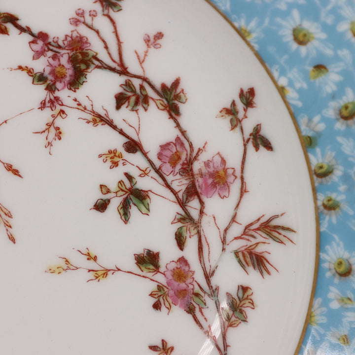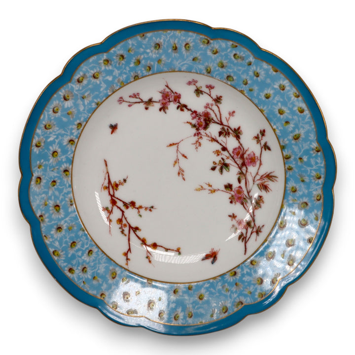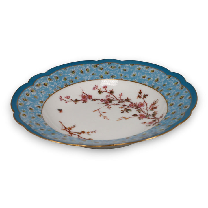 Tressemanes & Vogt TV Limoges Rimmed Soup Bowl 9 1/2" Pink Blue France Antique