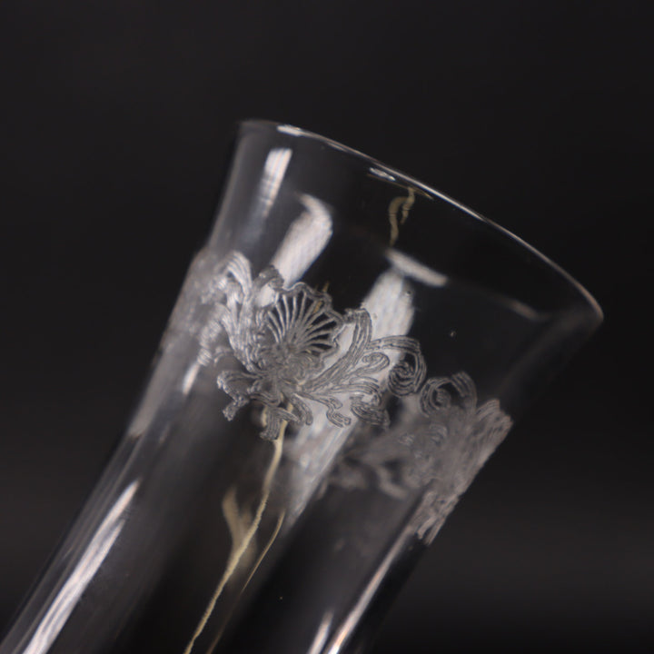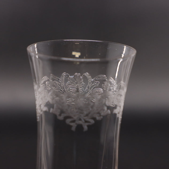 Tulip Shaped Etched Shell & Scroll Crystal Champagne Flute – Vintage 1940s