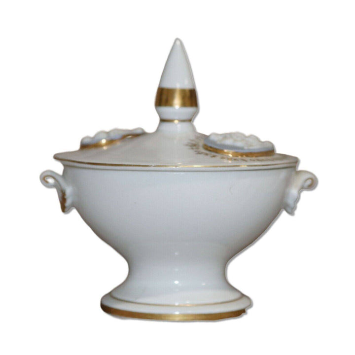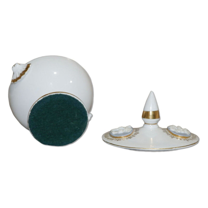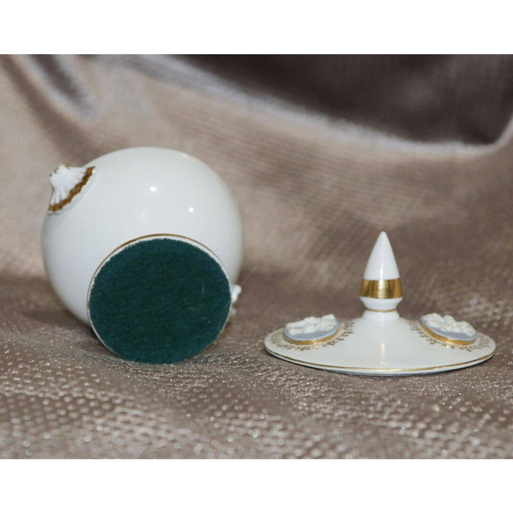 Porcelain with gold accents and cherub cameos. Green felt bottom.