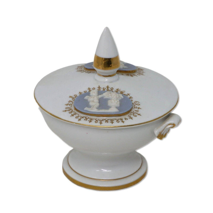 Ucagco Japan Jasperware Cameo Lidded Trinket Dish in Wedgwood Style 1960’s Vintage