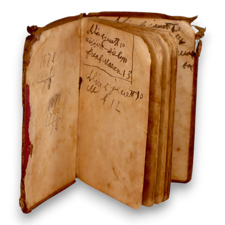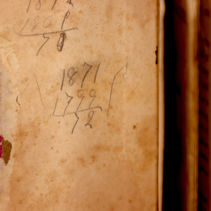 Condition: Antique condition with visible wear, foxing, markings, and minor page damage