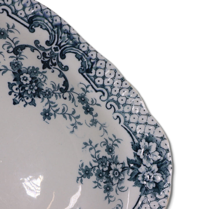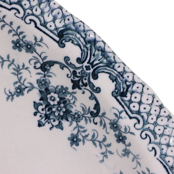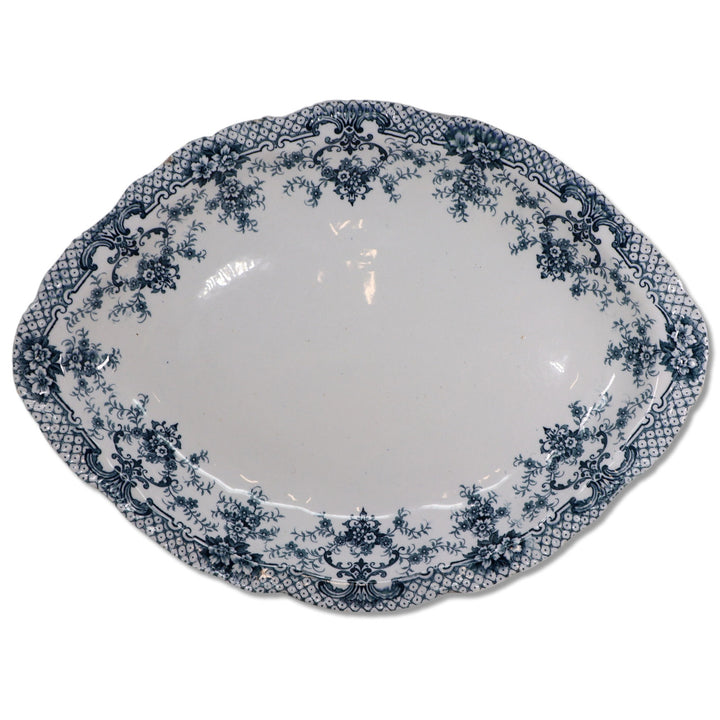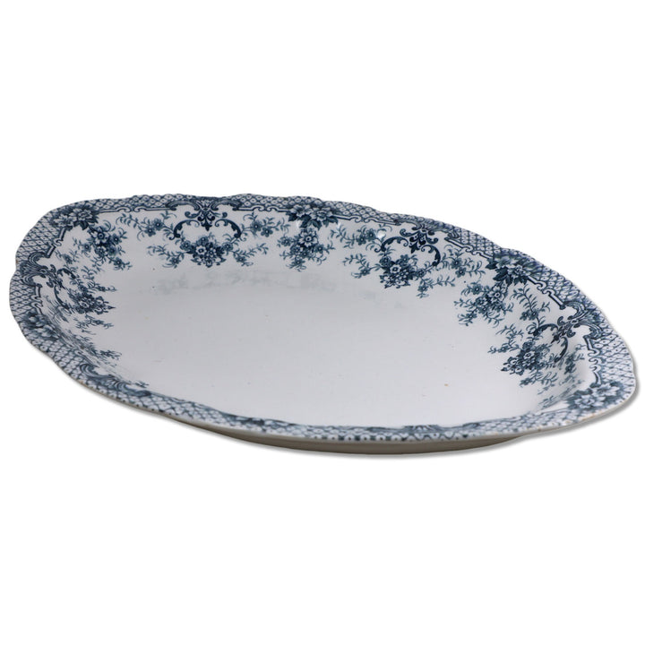 Upper Hanley Court Kings Border Oval Serving Platter 16" Blue Flora England 1890