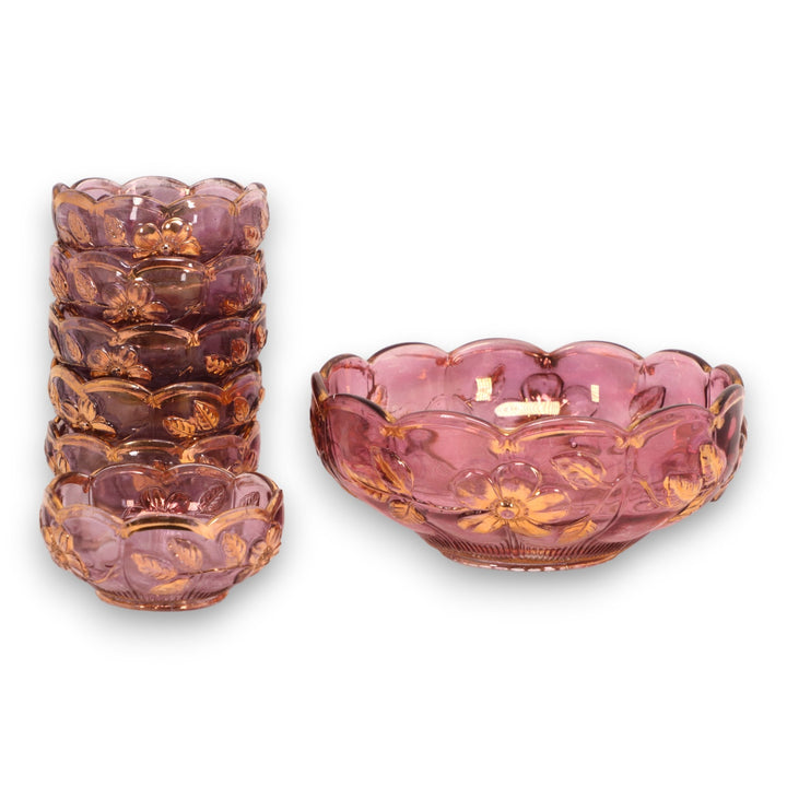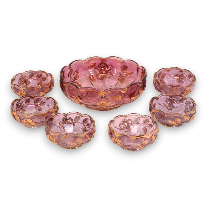 US Glass 7pc 15161 Paneled Dogwood Ruby Flash Gold Trim 1915