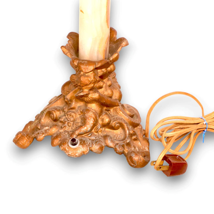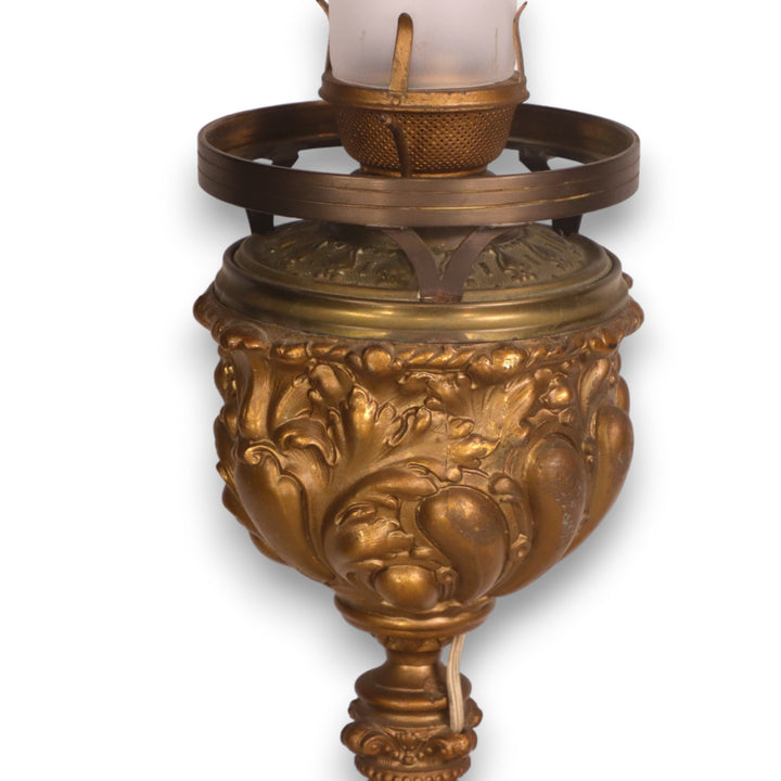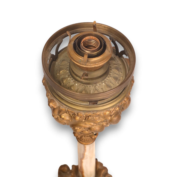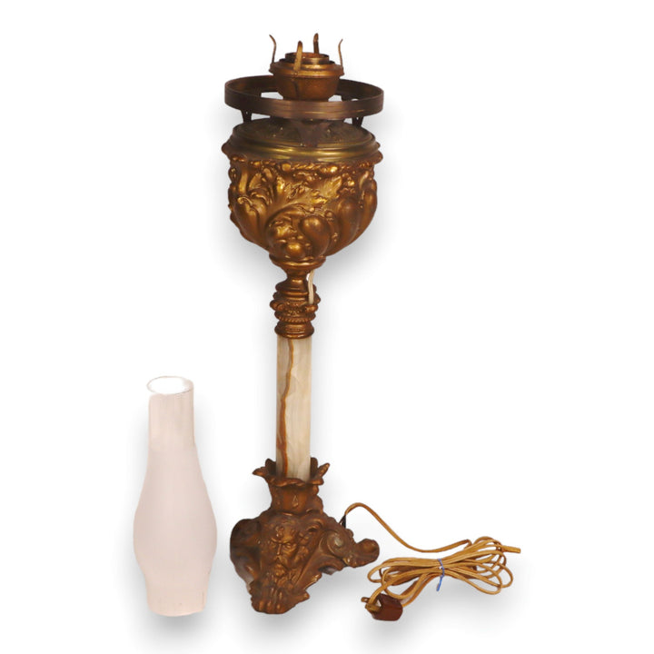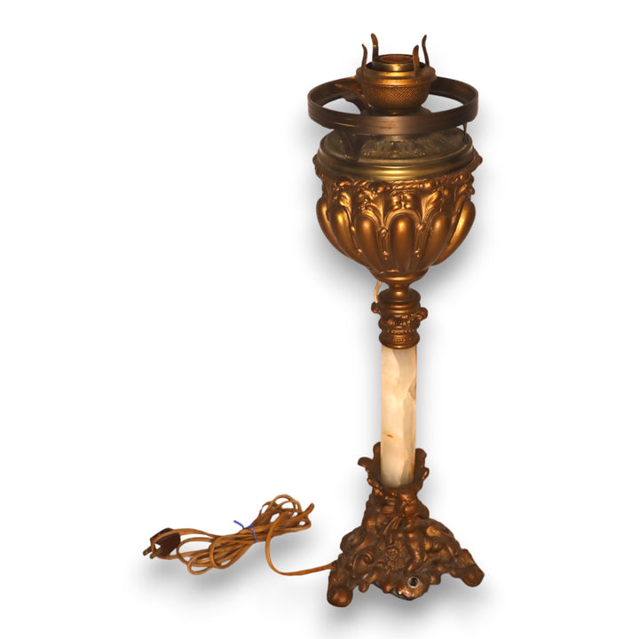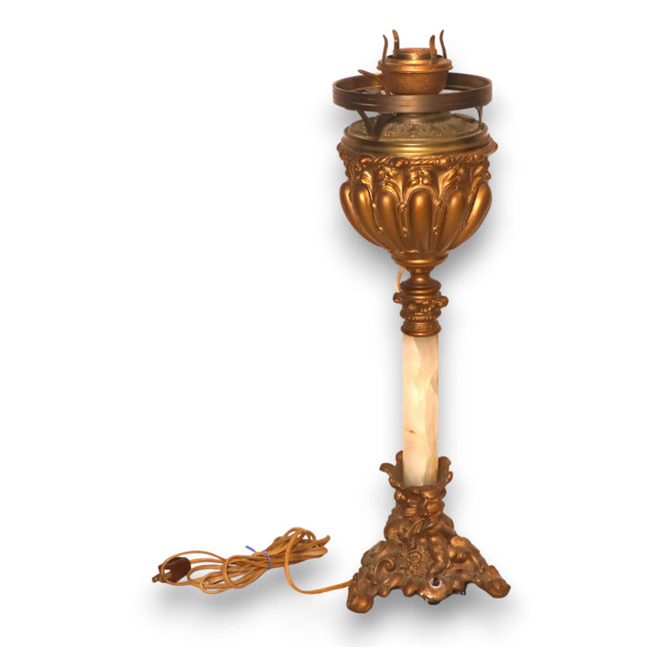 Victorian Gold Parlor Converted 22" Oil Lamp with Marble Stem Chimney