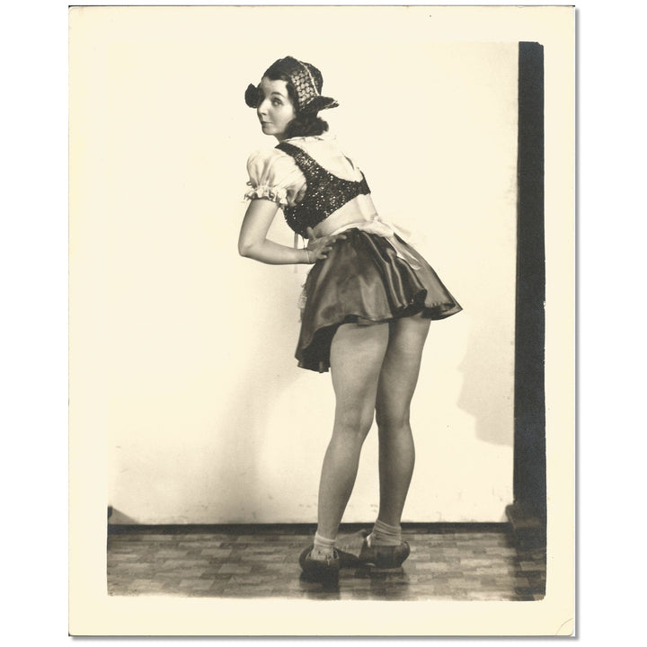 Playful risqué pose, typical of mid-20th-century stage acts